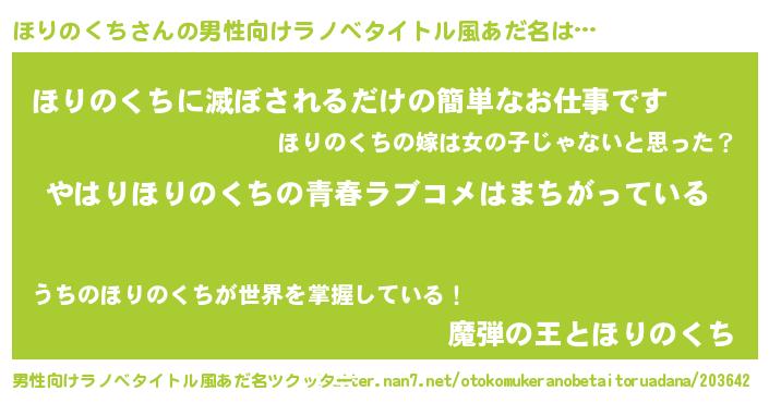 | 女子向けラノベタイトル風あだ名 | 『ほりのくちの雑貨屋さん』 |