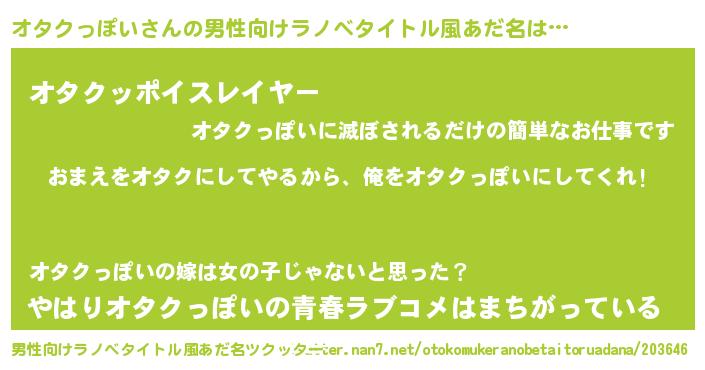 | 女子向けラノベタイトル風あだ名 | 『オタクっぽい夫妻のなれそめ』 |