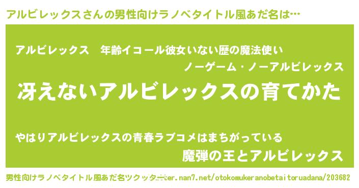 | 胡散臭い通販商品みたいなあだ名 | 『世界中を虜にした100年もののヴィンテージワイン…その名も「アルビレックス」』 |