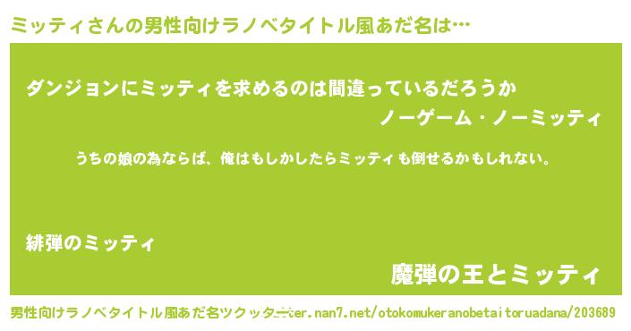 | ポケモン風あだ名 | 『ミッテダネ』『ヒミッティ』 |