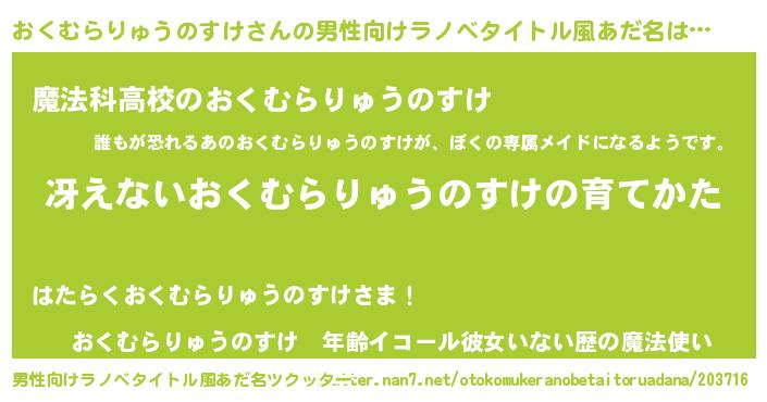| 意味不明あだ名 | 『自称おくむらりゅうのすけ』 |