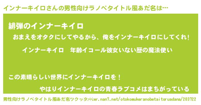 インナーキイロさんの男性向けラノベタイトル風あだ名をツクッター!
