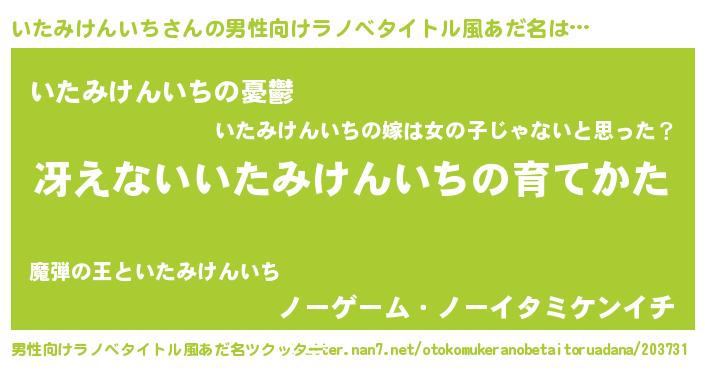 | 胡散臭い通販商品みたいなあだ名 | 『モテモテ間違いなし霊験あらたかなお札…その名も「いたみけんいち」』 |