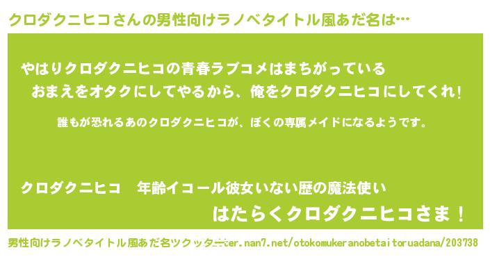 | 女子向けラノベタイトル風あだ名 | 『クロダクニヒコの契約王妃』 |