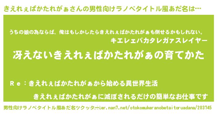 | 意味不明あだ名 | 『きえれぇばかたれがぁフォーエバー』 |