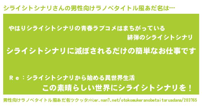シライシトシナリさんの男性向けラノベタイトル風あだ名をツクッター!