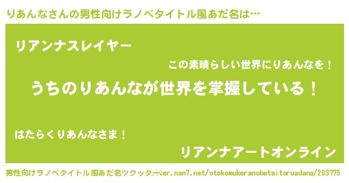 | 胡散臭い通販商品みたいなあだ名 | 『億万長者になれる霊験あらたかなお札…その名も「りあんな」』 |