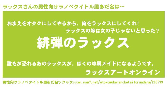 | ヒーロー風カッコイイあだ名 | 『友情の使者ラックス』『天弓騎士ラッ』 |