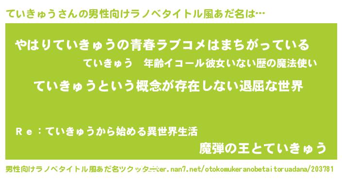 | 意味不明あだ名 | 『永久保存ていきゅう』『自称ていきゅう』 |
