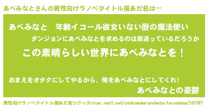 | 胡散臭い通販商品みたいなあだ名 | 『世界中を虜にした世界で10本だけ現存している希少なブランデー…その名も「あべみなと」』 |