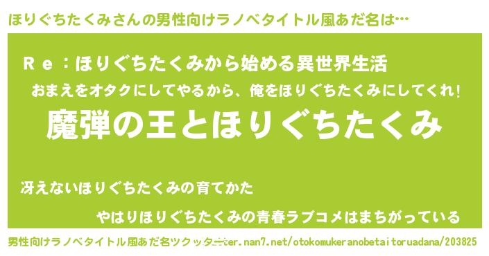 | 意味不明あだ名 | 『住所不定無職ほりぐちたくみ(6歳)』 |