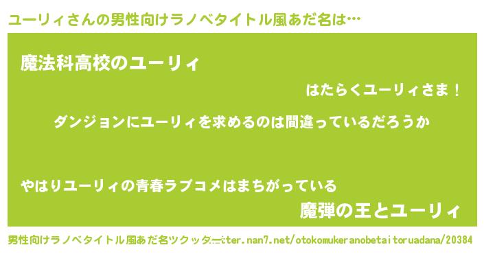 | ヒーロー風カッコイイあだ名 | 『暗黒騎士ユー』『最強戦士ユーリィ』 |