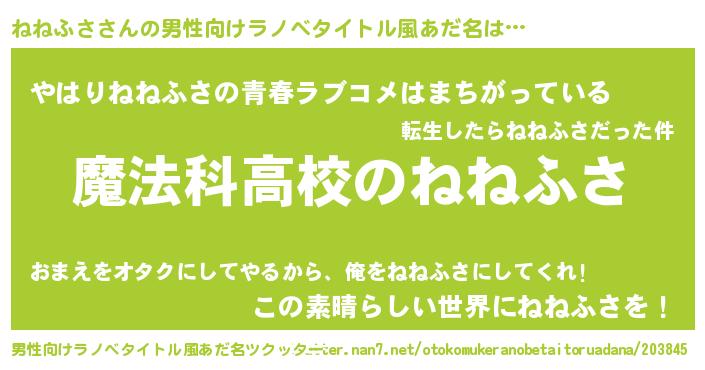| 肩書あだ名 | 『ねねふさ閣下』『ねねふさ国家主席』 |