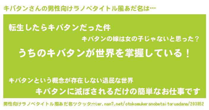 | 女子向けラノベタイトル風あだ名 | 『男装キバタンの憂鬱な任務』 |
