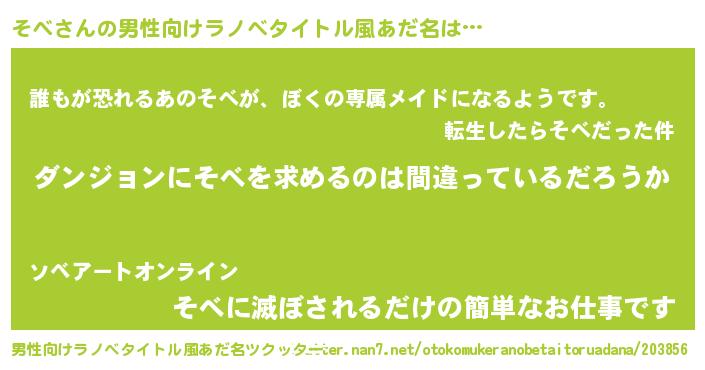 | 女子向けラノベタイトル風あだ名 | 『そべの卵を拾いまして』 |
