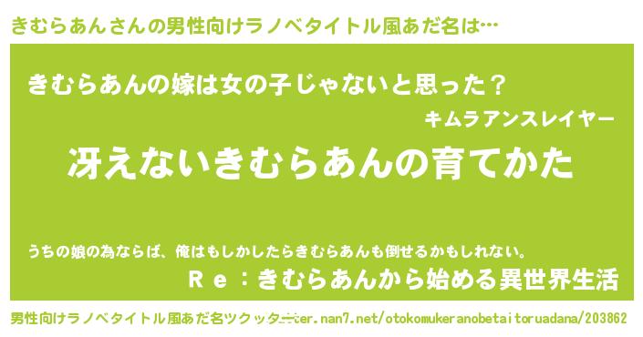 | 女子向けラノベタイトル風あだ名 | 『シンデレラきむらあん家の靴箱館』 |