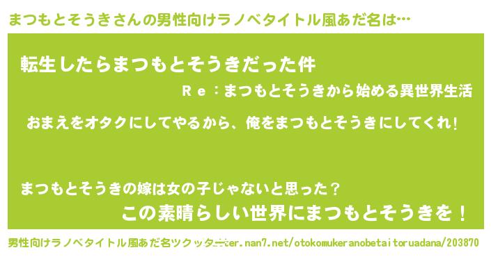 | ヘコむあだ名 | 『まつを』『なまこ酢』『まつにゅー』 |