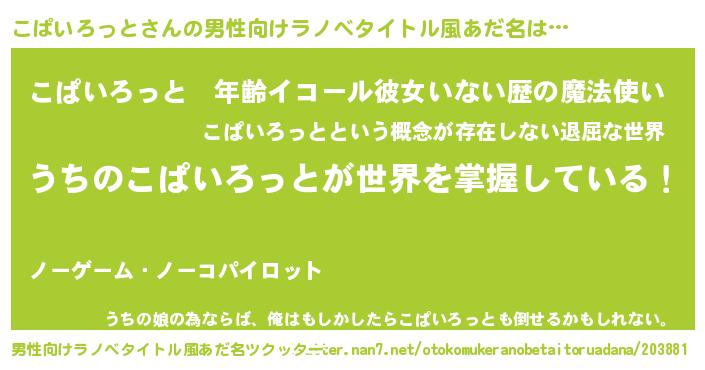 | ヒーロー風カッコイイあだ名 | 『ウルトラこぱいろっとマン』 |