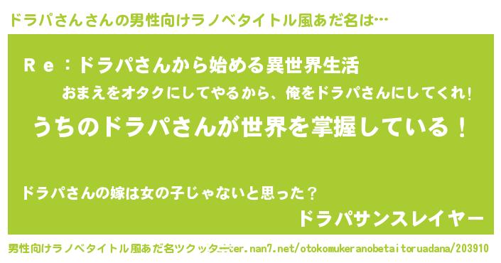 | 胡散臭い通販商品みたいなあだ名 | 『芸能人もオススメする高麗人参…その名も「ドラパさん」』 |