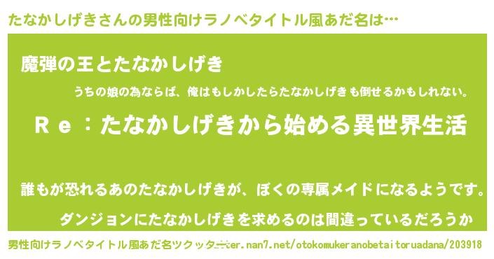 | 意味不明あだ名 | 『自称たなかしげき』 |