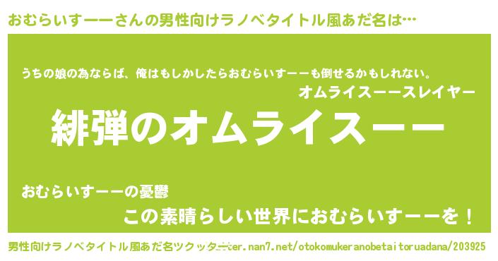 | 胡散臭い通販商品みたいなあだ名 | 『幸せが訪れる高級そうな皿…その名も「おむらいすーー」』 |