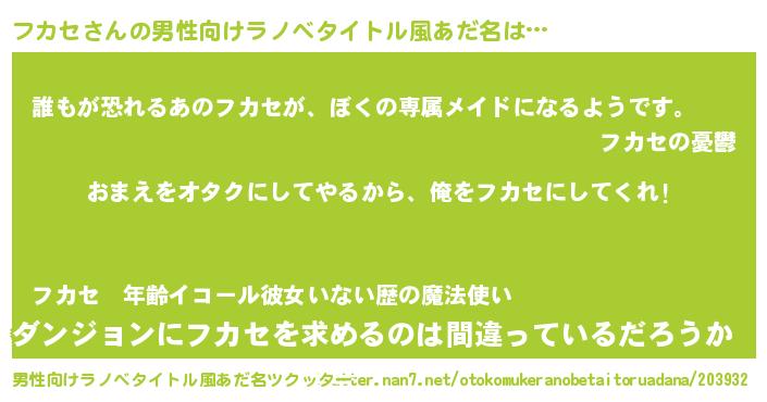 | 女子向けラノベタイトル風あだ名 | 『フカセ夫妻のなれそめ』 |