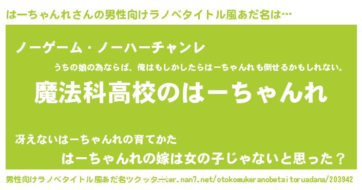 | 女子向けラノベタイトル風あだ名 | 『はーちゃんれなんてお断りですっ。』 |