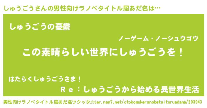 | ヘコむあだ名 | 『しゅっふぃ~』『しゅうごう(苦笑)』 |