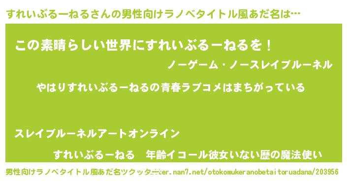 | 女子向けラノベタイトル風あだ名 | 『すれいぶるーねるの雑貨屋さん』 |