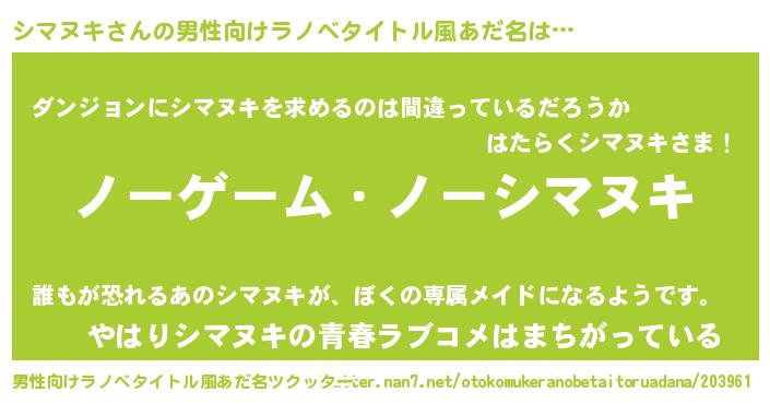 | ヒーロー風カッコイイあだ名 | 『天空の使者シマヌキ』『魔戒騎士シマ』 |