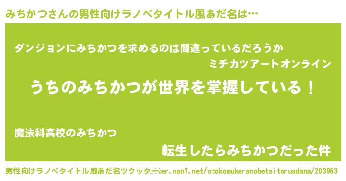 | 胡散臭い通販商品みたいなあだ名 | 『全米が絶賛したサプリメント…その名も「みちかつ」』 |