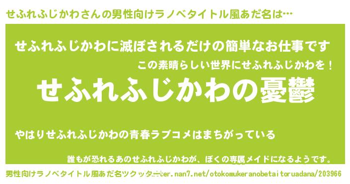 | 胡散臭い通販商品みたいなあだ名 | 『必ず成功する水晶球…その名も「せふれふじかわ」』 |
