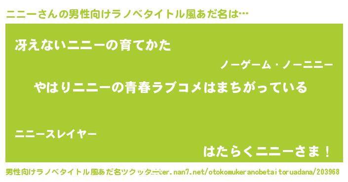 | 女子向けラノベタイトル風あだ名 | 『ニニー伯爵の花嫁』『死神ニニーの再婚』 |