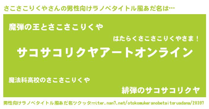 | 肩書あだ名 | 『さこさこりくや御曹司』 |
