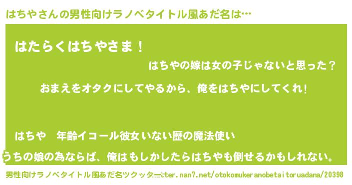 | ファンタジー風あだ名 | 『クインハット』『エターナルハチヤー』 |