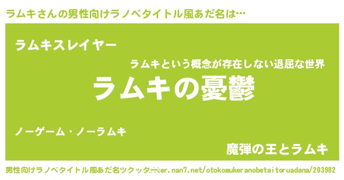 | 女子向けラノベタイトル風あだ名 | 『ラムキ姫と円卓の騎士』『ラムキ恋絵巻』 |