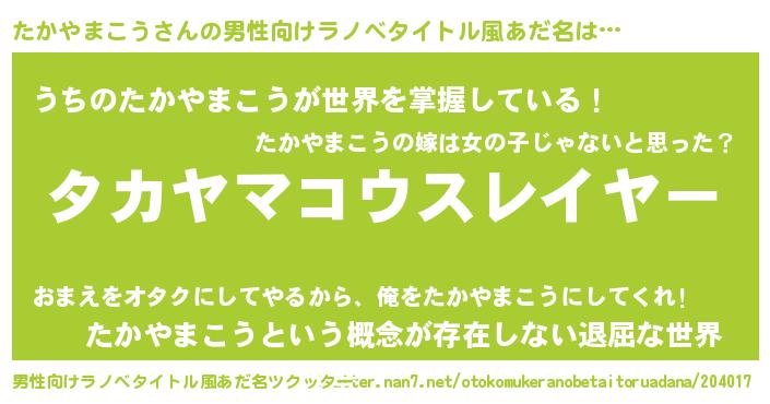 | 料理風あだ名 | 『たかやまこうごはん』 |