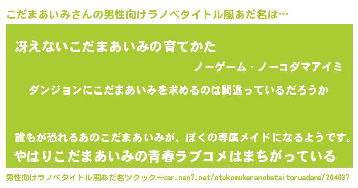 女子向けラノベタイトル風あだ名 | 『こだまあいみは平凡を望む』 |