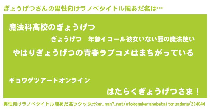 | 女子向けラノベタイトル風あだ名 | 『ぎょうげつの雑貨屋さん』 |