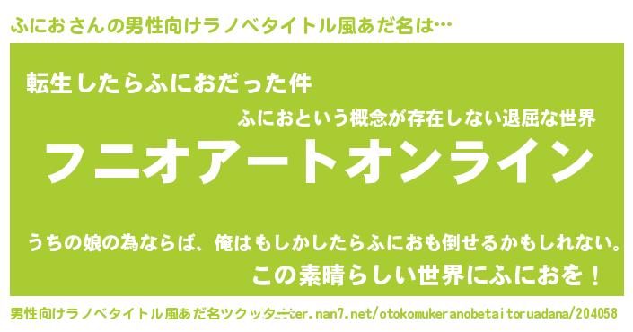 | ヘコむあだ名 | 『ふにっふぃ~』『ふにお(小並感)』 |