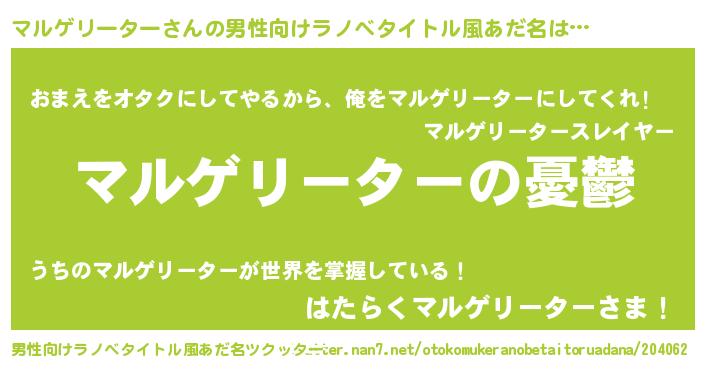 | 胡散臭い通販商品みたいなあだ名 | 『必ず成功するブレスレット…その名も「マルゲリーター」』 |