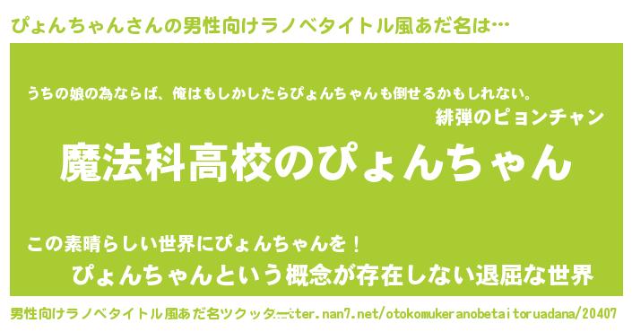 | 女子向けラノベタイトル風あだ名 | 『ぴょんちゃんアンティーク』 |