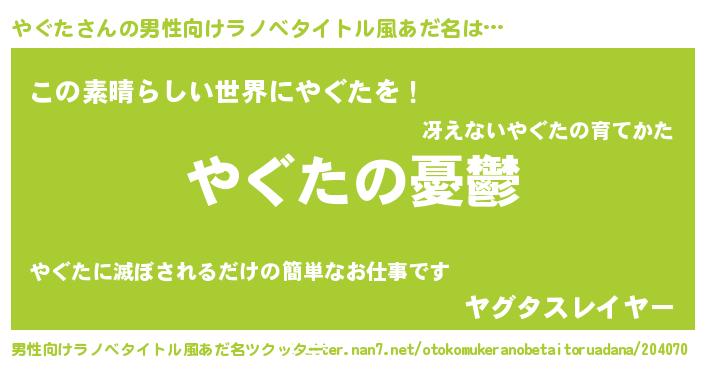 | 胡散臭い通販商品みたいなあだ名 | 『必ず成功する水晶球…その名も「やぐた」』 |