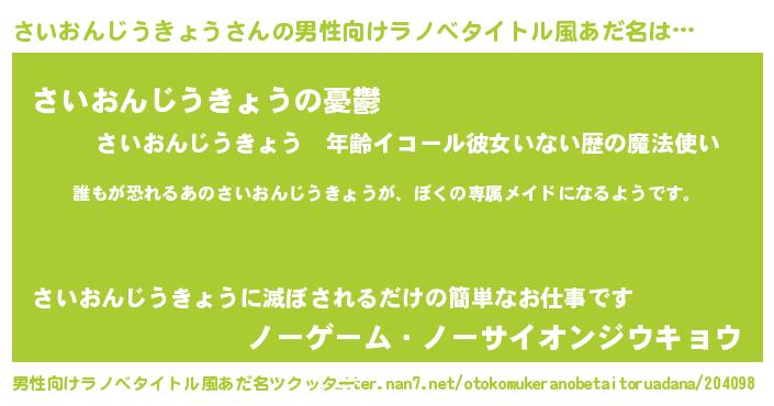 | ヘコむあだ名 | 『さいおんじうきょう(遠い目)』『さいもー』 |