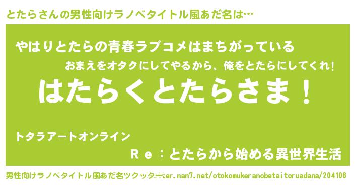| 意味不明あだ名 | 『とたらフォーエバー』『自称とたら』 |