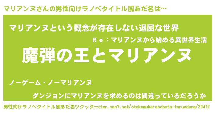 | 意味不明あだ名 | 『住所不定無職マリアンヌ(7歳)』 |