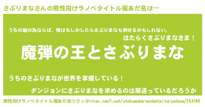 | 女子向けラノベタイトル風あだ名 | 『さぶりまなが死なない童話 林檎のさぶりまなの診療簿』 |