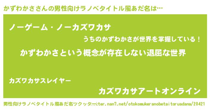 | 意味不明あだ名 | 『永久保存かずわかさ』『自称かずわかさ』 |