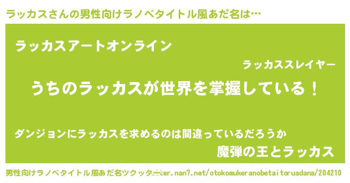 | 意味不明あだ名 | 『ペロリンラッカス』『自称ラッカス』 |