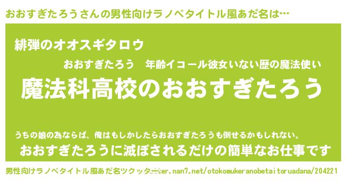 | 女子向けラノベタイトル風あだ名 | 『おおすぎたろうなんてお断りですっ。』 |